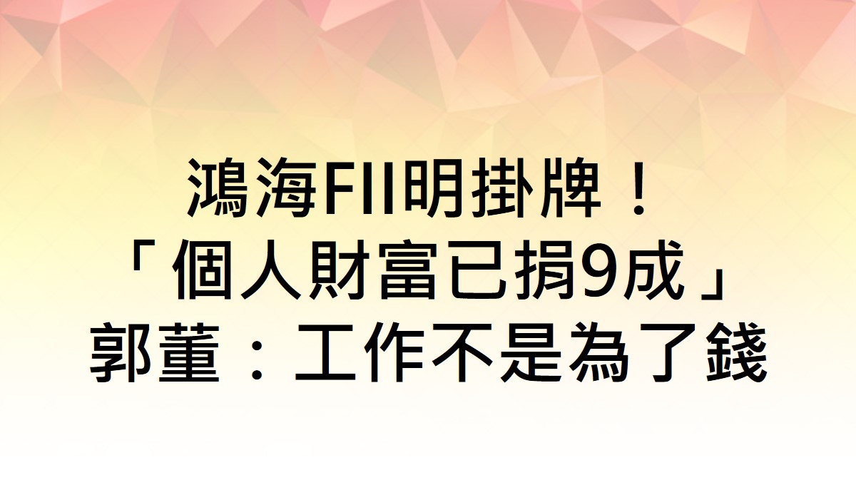 ▲郭台銘說,「我已經捐贈了個人90%的財富,已經不是為錢財工作了,但是現在每天還工作16個小時。」(圖/翻攝自鉅亨網)