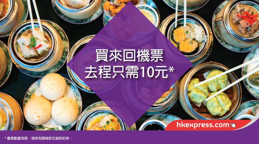 出國只需要10元!?HK Express香港快運為香港旅遊發展局舉辦的第十屆亞洲香港美酒佳餚巡禮作熱身,推出「買來回機票,去程只需台幣10元起」的促銷方案,即日起生效。