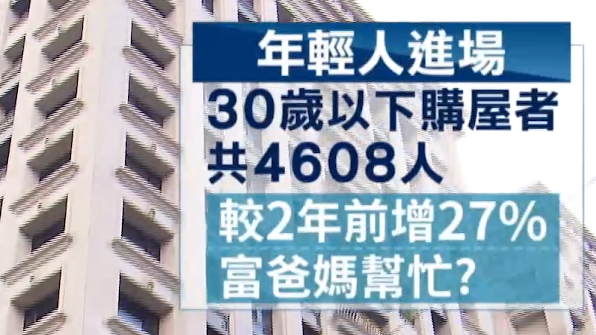 月薪沒20萬,買房好多人想都不敢想,不過數據卻相反,今年Q1,30歲以下購屋者共4608人,較2年前大增27%,專家說可能是富爸媽來幫忙。