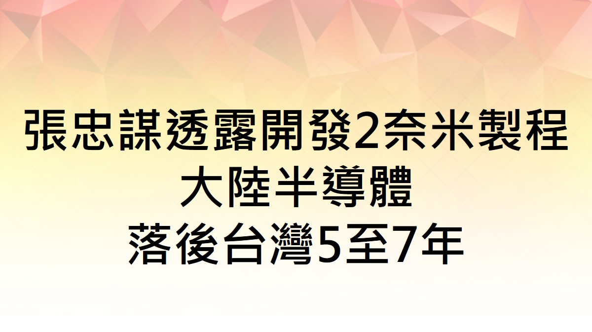 台積電創辦人張忠謀14日出席歐洲商會午餐會,張忠謀表示,儘管「摩爾定律」面臨極限挑戰,但台積電的3奈米製程將在2年內開發成功,2奈米製程估計在2025年前問世。至於被問到大陸半導體產業是否將迎頭趕上台灣?張忠謀巧妙回答「不會馬上」。