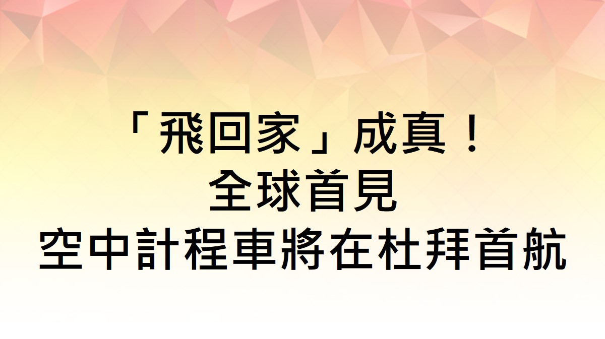 空中計程車要來啦!杜拜又將有一項新奇體驗,5年內在杜拜首航。全球第一架允許載客的自動駕駛「空中計程車」,預計5年內完成各項測試出現在杜拜上空!