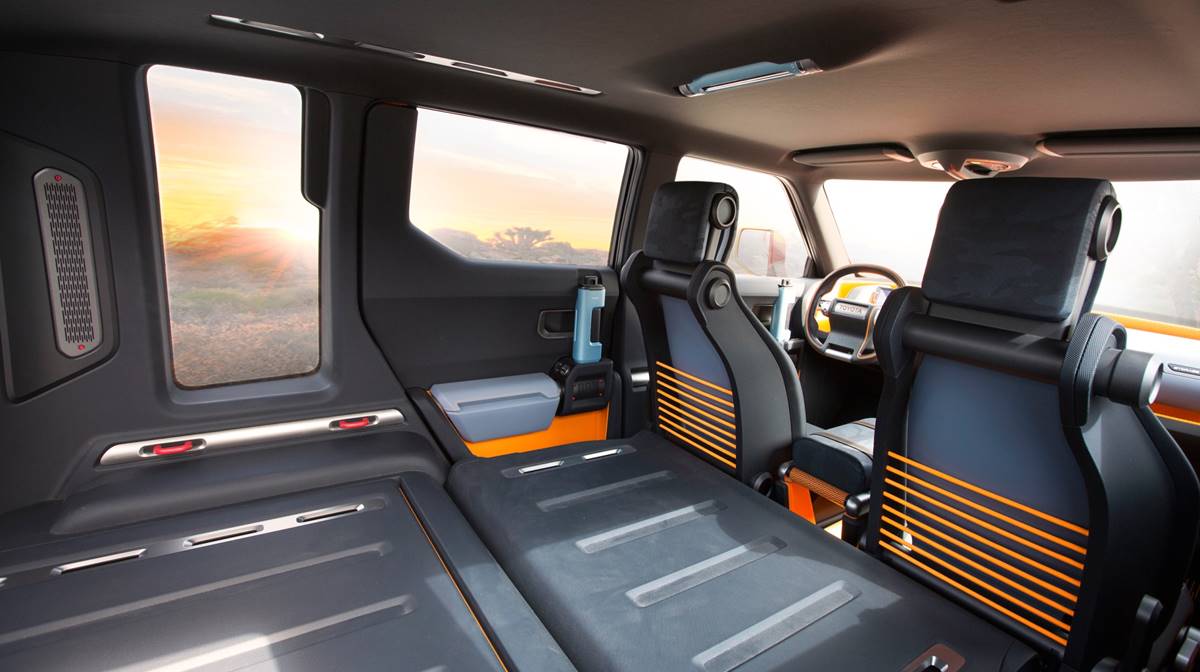 因應從事戶外休閒活動的需求,車內配備了可拆式音響與照明燈方便拿到車外來使用。另外一個有趣的設計就是車門把手可以拿來當作杯架;中央鞍座上的扶手展開來其實就是The North Face睡袋;可左右對開的掀背尾門內側分別有保暖收納與保冷收納盒,用來放置需要保暖與保冷的用品與食品等。
