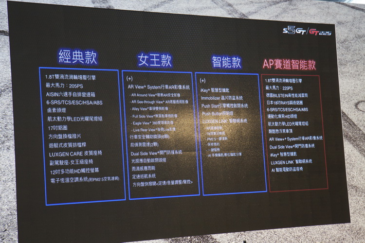 繼四月份發表預售價之後,LUXGEN的中型四門房車S5改款之作S5 GT/S5 GT225五月13日正式發表。這次的改款重點在於將產品重新定位為四門Coupe,所以改款的主要重點就在於動力與操控性能的提升。