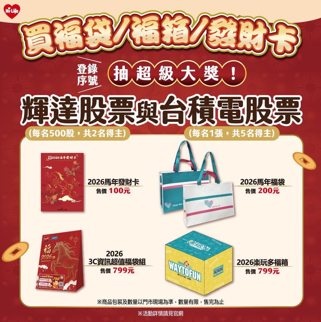 (2025/12/30 14:29)萊爾富福袋、福箱開賣! 799元高CP值 再抽輝達、台積電股票