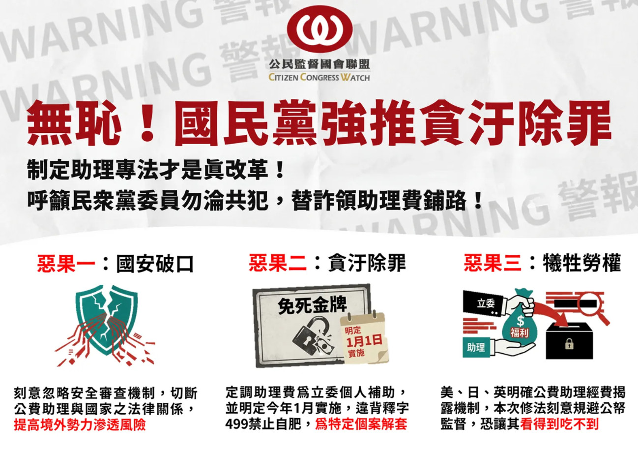 ▼公督盟痛批國民黨強推助理費貪污除罪化「無恥」。(圖/翻攝自公督盟)