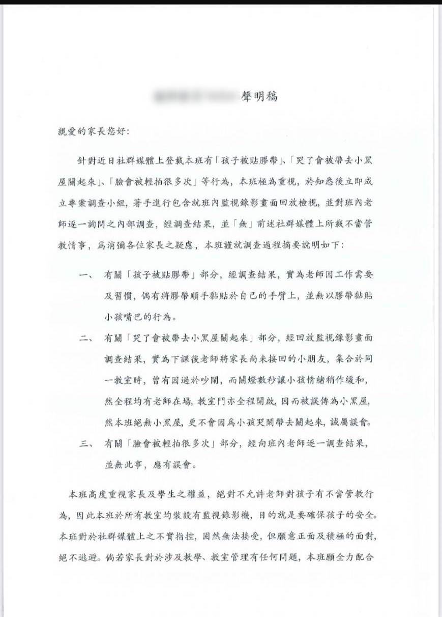 擁有55.8萬訂閱的知名地產YouTuber今(8)日爆料,3歲女兒在林口某雙語幼兒園遭虐,包括被以封箱膠帶貼嘴、打臉、關小黑屋等,年幼的女兒已經需要接受幼兒心理(諮詢),園內多名孩童也疑受害。針對網紅指控,園方否認有貼膠帶虐童行為,卻被揭發未正式立案屬違法經營。對此,新北教育局接獲虐童通報後稽查,發現該園以補習班名義違法從事教保服務,已勒令停止教保服務,並依違反《幼兒教育及照顧法》第51條規定,最高裁罰負責人罰30萬元。