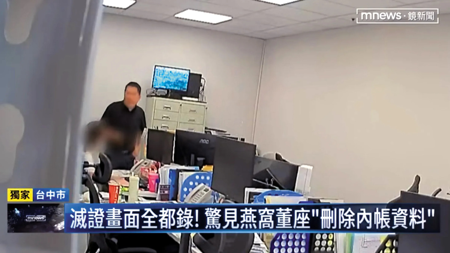 ▼案情爆發後,林志明(站立者)直闖公司,有湮滅證據的嫌疑。(圖/翻攝自鏡新聞)