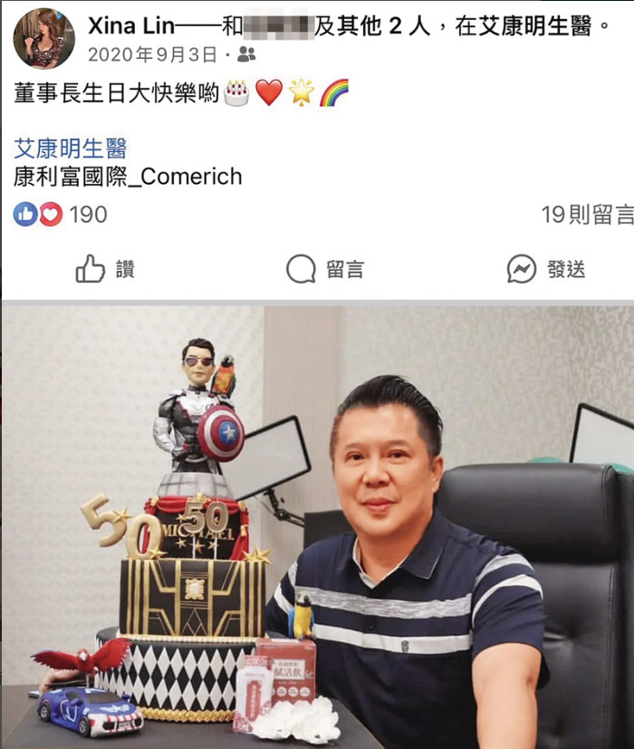 ▼做為公司的行銷總監及「總裁領導」(直銷級別),林熙娜公開祝賀董事長生日,卻被爆出兩人關係超越同事情。(圖/翻攝自Xina Lin臉書)
