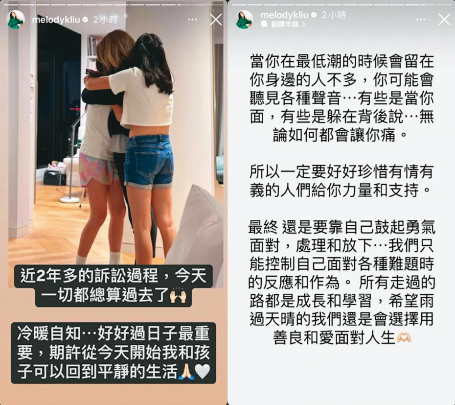 ▼Melody在和前夫的離婚訴訟結束後,感性發文「用善良與愛面對人生」。(圖/翻攝自Melody IG)