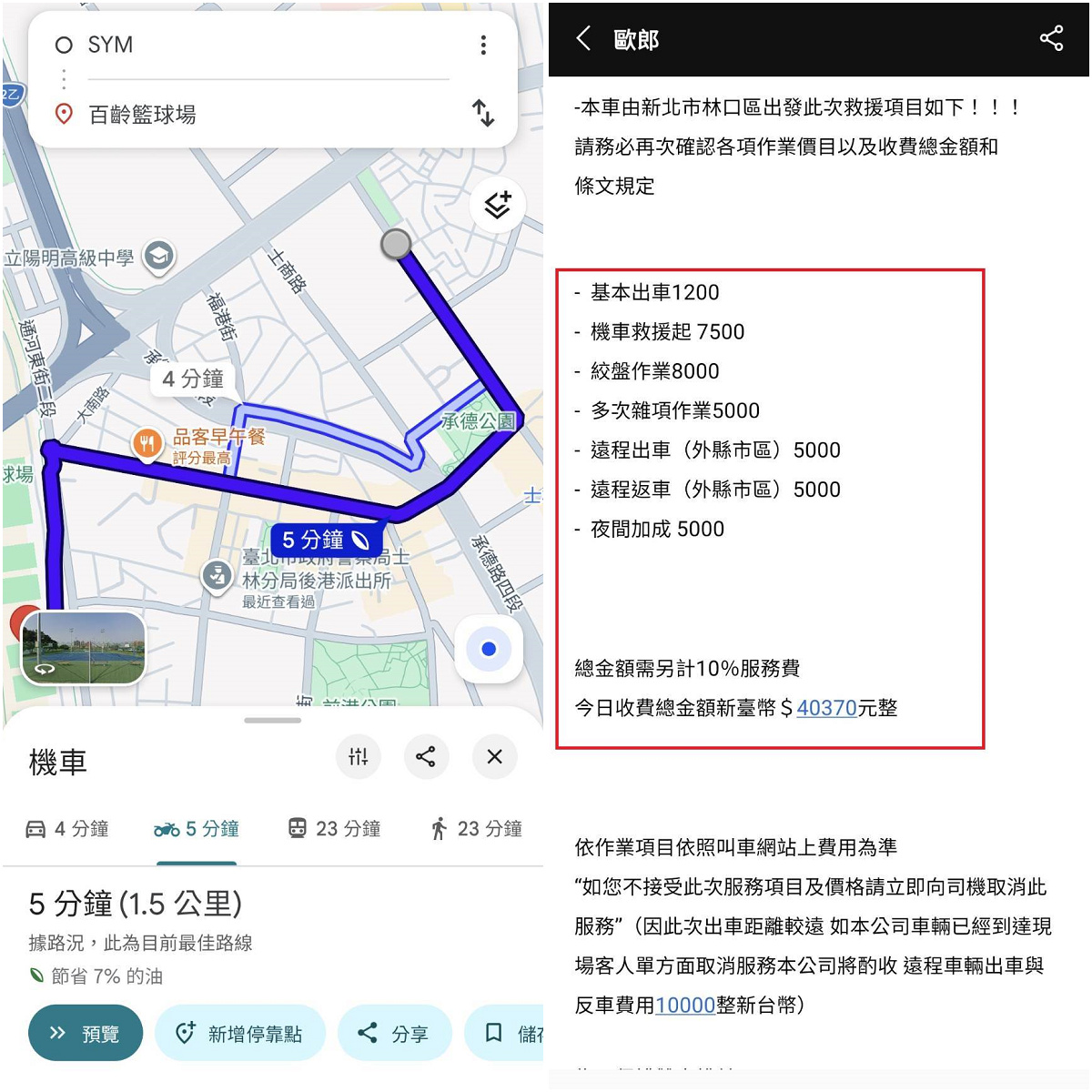 L先生投訴,事發在本(2)月6日晚間8時許,當時騎車行經台北市士林堤外道路,機車拋錨無法發動,由於附近車行都無法協助道路救援,加上正在趕時間,焦急之下只好上網找道路救援業者,當下還特別篩選了一下,殊不知還是遇上「拖吊蟑螂」。