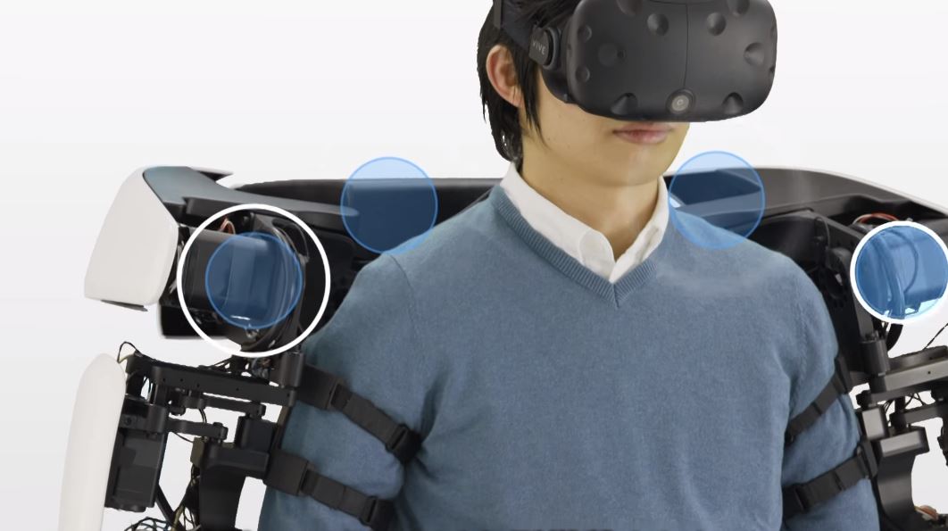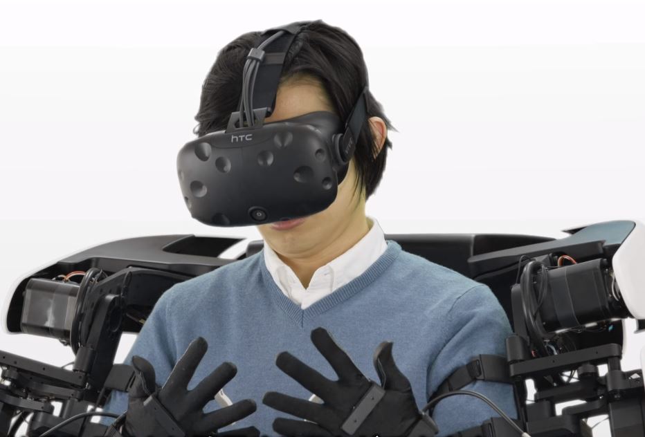 遠端操控機器人的使用方式,是讓操控者配戴VR眼鏡以及觸覺反饋手套,如此一來,就能感受到機器人的所見、所聽、所觸,還能操控機器人拿物品。