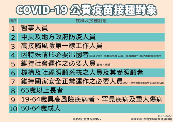 ▼台灣開放65歲以上長者施打AZ疫苗。(圖/指揮中心提供)