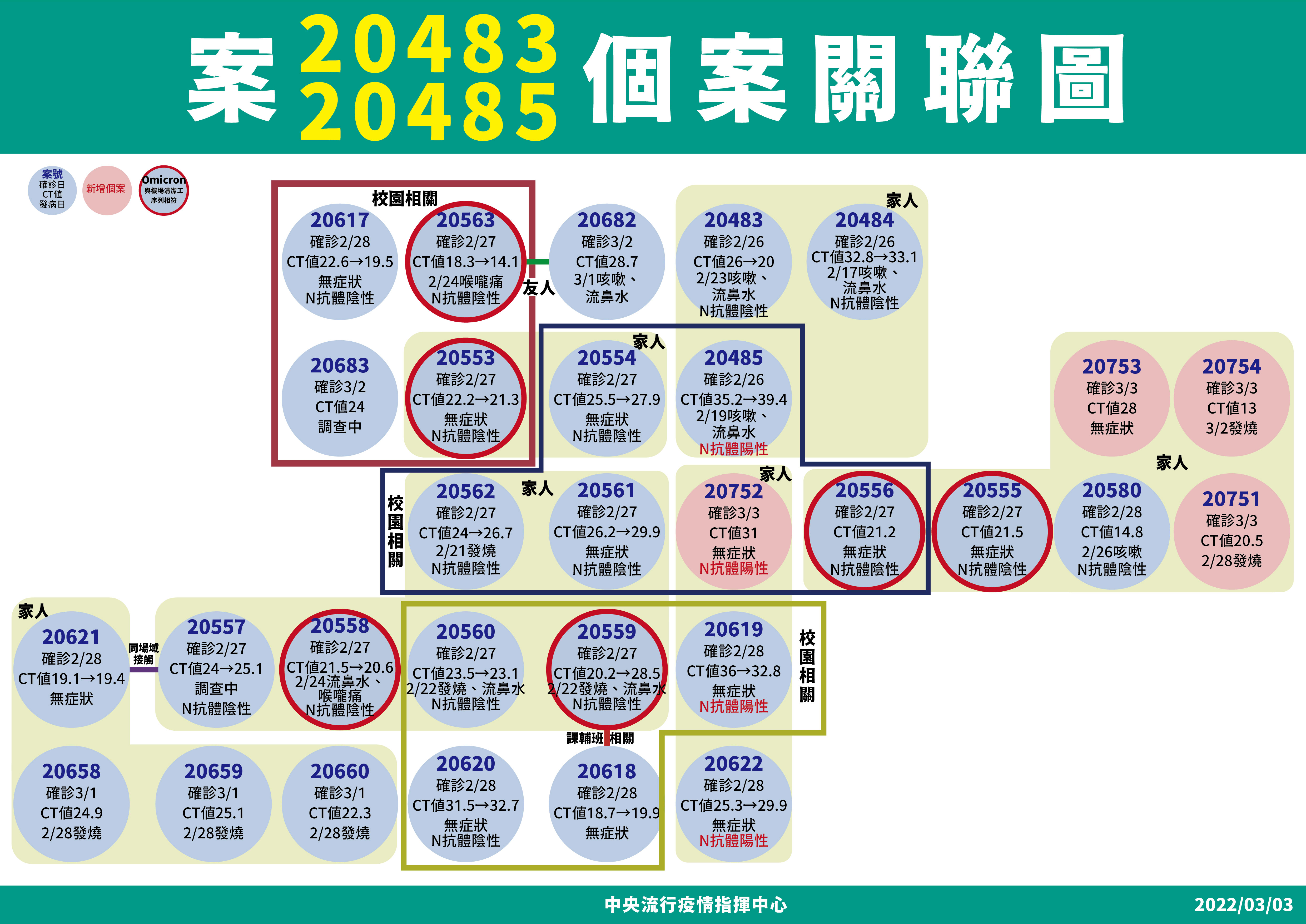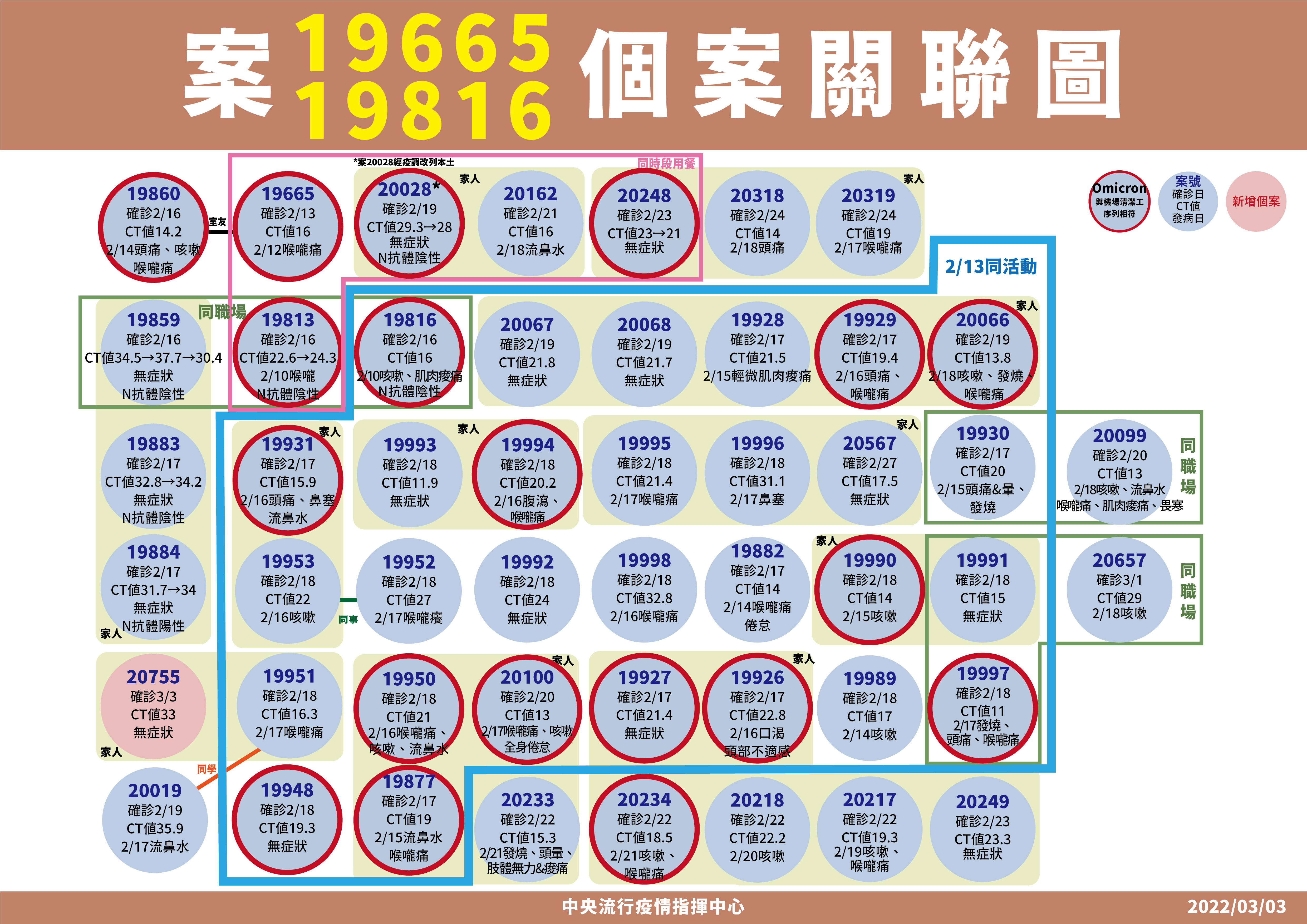 指揮中心說明,今日新增境外移入個案為33例男性、32例女性、1例調查中,年齡介於未滿5歲至70多歲,分別自越南(11例)、菲律賓(6例)、美國(5例)、香港(4例)、新加坡、印尼及印度(各3例)、柬埔寨、緬甸及英國(各2例)、拉脫維亞、日本、南非、法國及阿拉伯聯合大公國(各1例)移入,另20例調查中。入境日介於今(2022)年1月25日至3月2日。