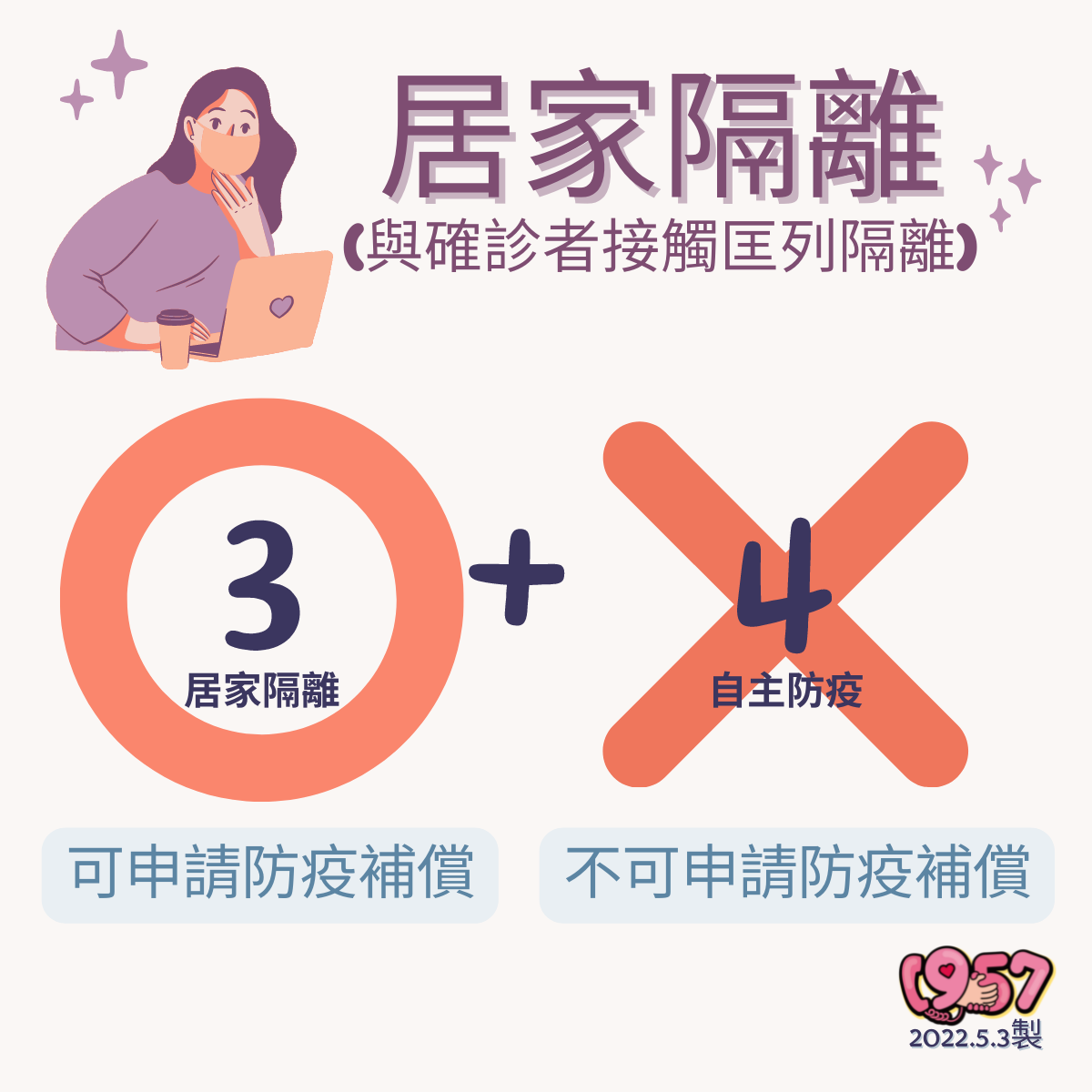 本土疫情炸鍋,確診人數不斷攀升,預估居隔人數將越來越多,而民眾也關心,若確診或是被匡列隔離,是否能領到每日1000元防疫補償? 「衛福部1957福利諮詢專線」臉書粉專也特別整理出懶人包,供民眾參考。