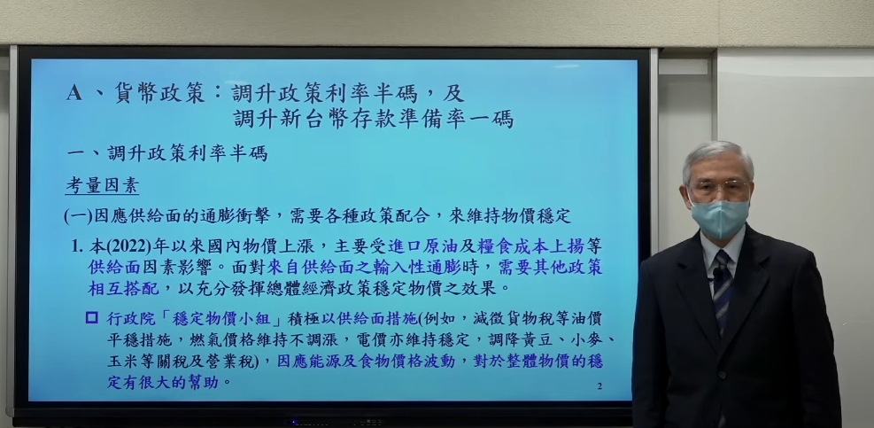 央行指出,綜合國內外經濟金融情勢,考量國際商品價格持續走高,國內輸入性通膨壓力大,國內物價漲幅將續居高;近月國內疫情嚴峻,干擾內需服務業復甦步調,抑制民間消費動能;此外,國際經濟前景面臨下行風險,可能影響國內經濟成長力道。