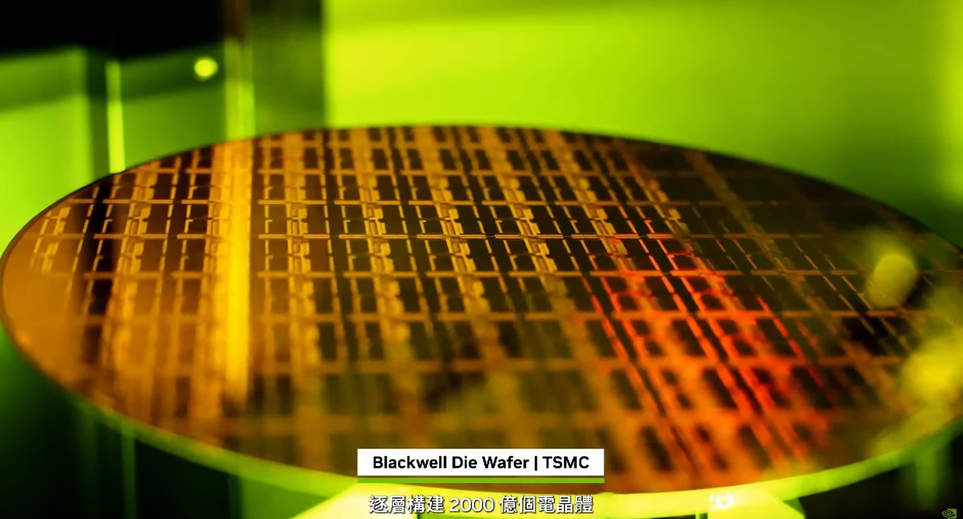 黃仁勳在演講過程中,藉由一段影片,揭露了Blackwell的製作過程,影片開頭,他直言,「Blackwell是一項工程奇蹟!」它最初是台積電的一片空白矽晶圓,在一片12英吋的晶圓上,經歷數百道的晶片處理和紫外光微影步驟,逐層構建2000億個電晶體,晶圓被劃線切割成個別的Blackwell裸晶粒,經過測試和分類,良品晶粒將被挑選出來進入後續製程。