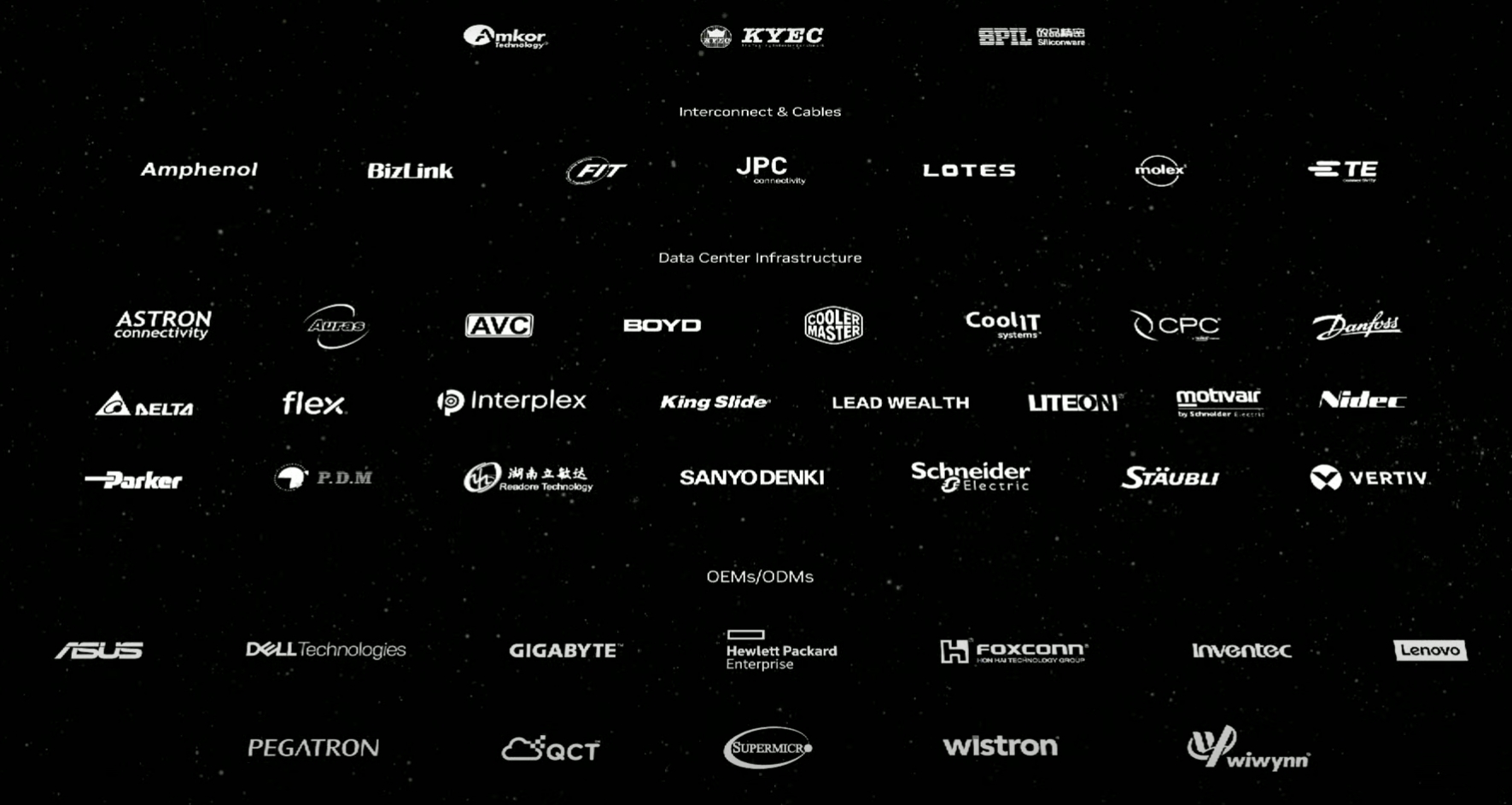 ▼影片的最後,以跑馬燈的方式呈現供應鏈,黃仁勳也表示,謝謝你,台灣!(圖/翻攝自輝達YT Keynote at COMPUTEX 2025)