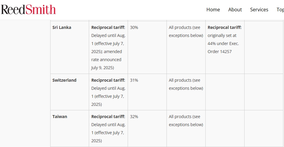 ▼近期網路上瘋傳ReedSmith網站上的關稅追蹤表。(圖/翻攝自ReedSmith官網)