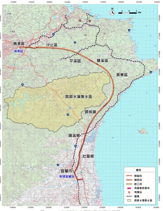 從交通部鐵道局的資料顯示,高鐵延伸宜蘭計畫路線全長大約60.6公里,既有高鐵南港站已預留尾軌路段大約1公里,並於大坑溪以西已出土,新建工程則約59.6公里,起點銜接南港站地下月台,途經南港、汐止、平溪、雙溪、貢寮,避開翡翠水庫集水區後進入頭城,於宜蘭縣政府東南側設站(宜蘭縣中心點),往南設置1座維修機廠,如今通過環評意味著北宜交通即將迎接嶄新時代。