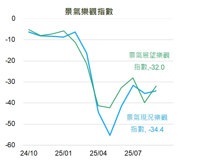 根據9月份調查果,景氣現況樂觀指數上揚至-34.4,展望樂觀指數亦同步走升至-32.0;大額消費意願指數提高至-0.9,耐久財消費意願指數則微幅走弱至-19.7;買房意願微幅上升至-48.7,賣房意願指數反而走低至-36.3。