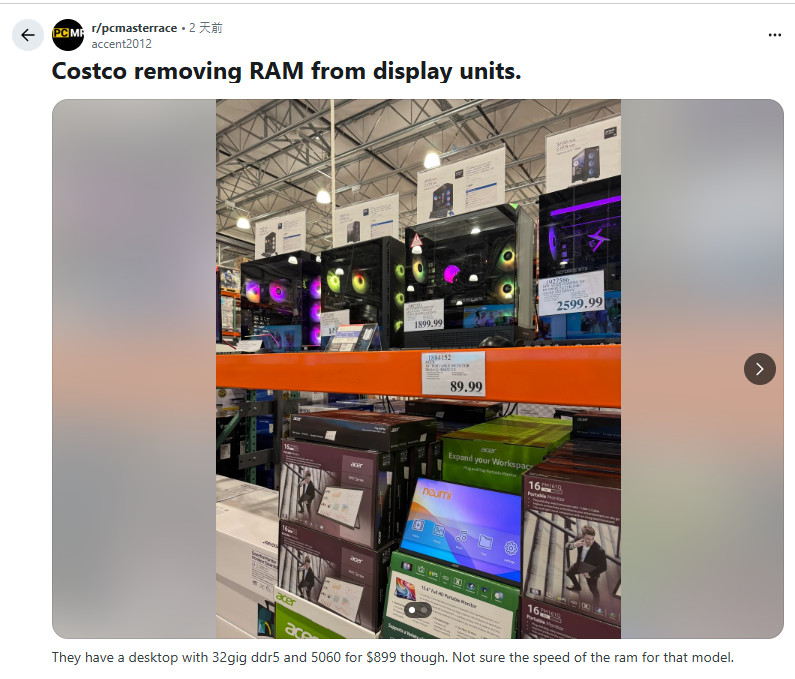 全球記憶體(RAM)與顯示卡(GPU)供需失衡,價格飆漲效應不只衝擊市場,也開始改變零售端的陳列方式。外媒報導,美國大型倉儲零售商好市多(Costco)近期已悄悄調整策略,將展示用電腦主機內的記憶體模組與顯卡拆除,以防範針對高價零組件的竊盜行為,引發科技圈與消費者熱議。