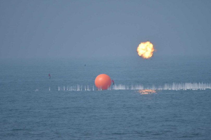 ▼勁蜂一型無人機後有精準擊中海上球型目標。(圖/報系資料照)