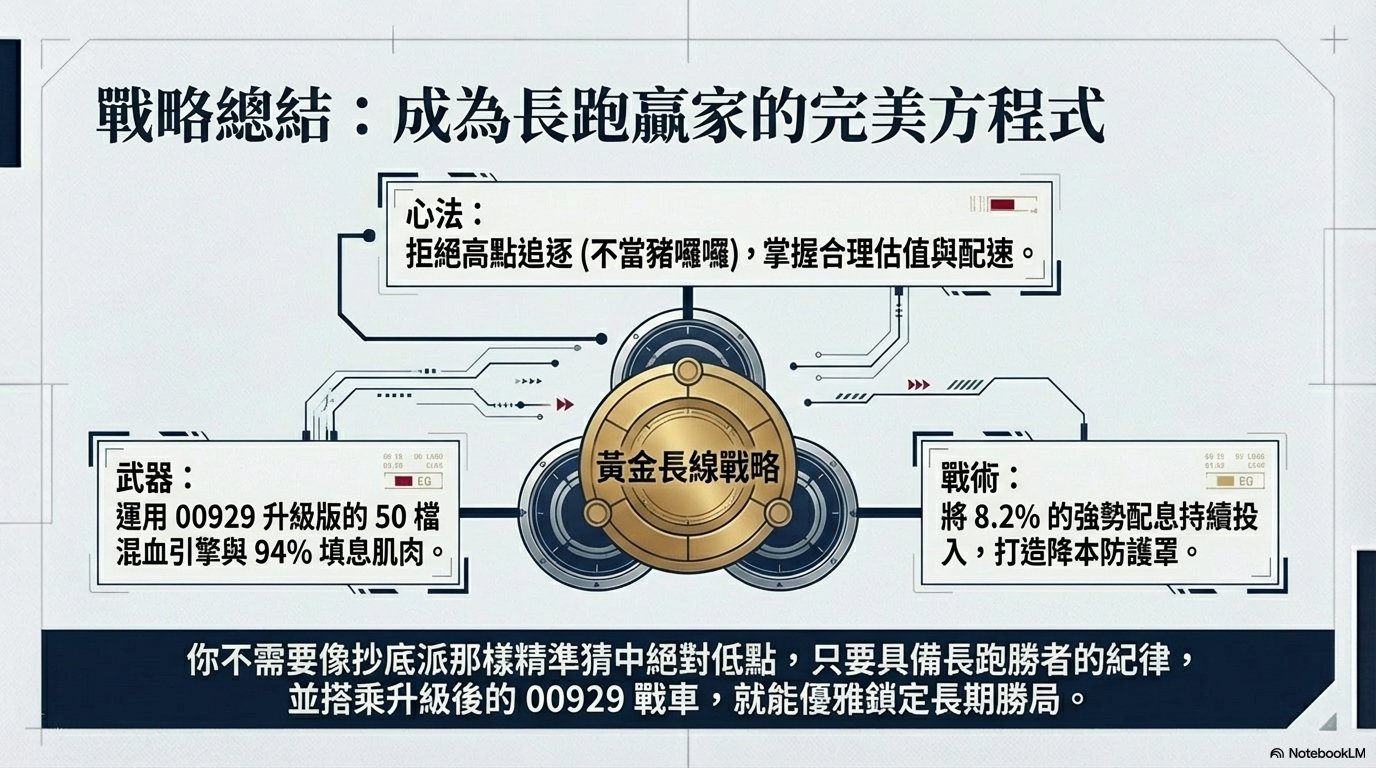 ▼想成為長期投資的大贏家,不想當被拍暈的「豬囉囉」?現在正是投資00929的黃金進場點。(圖/NotebookLM)