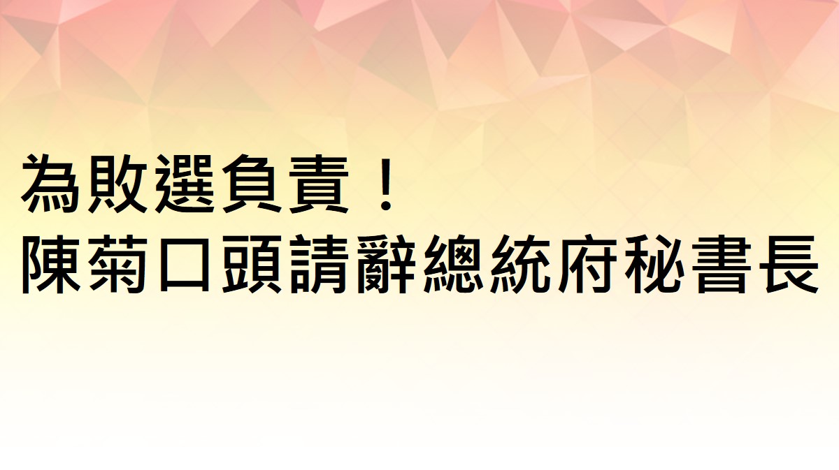 陳菊今晚9點半左右在臉書寫道,「今夜的選舉結果很抱歉讓支持者失望了,我已經口頭向總統請辭總統府秘書長職務,深刻的檢討、反省。」宣布已經提出請辭,並感謝每一位願意給他們機會的人民。