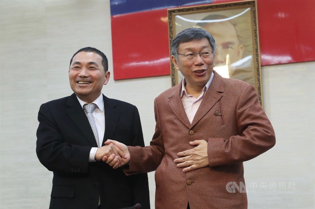 ▲新北市長侯友宜(左)11日上午到台北市政府拜訪台北市長柯文哲(右),雙方閉門會談,聚焦淡北快速道路案,並於會後共同接受媒體聯訪。(圖/中央社)