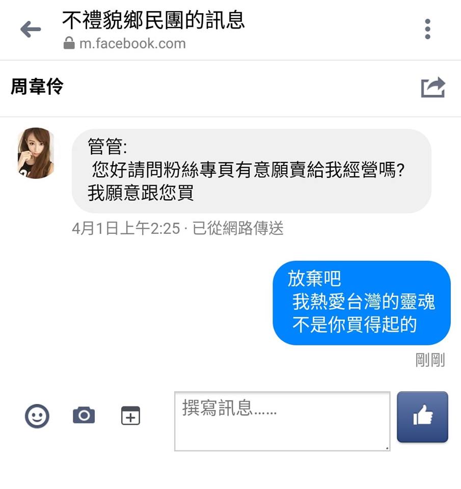 除此之外,包括「不禮貌鄉民團」、「姆士捲雜物誌」等臉書粉絲團近日也收到不明人士私訊詢問,能否轉售粉絲團經營權,訊息內容摻雜中國大陸用語。