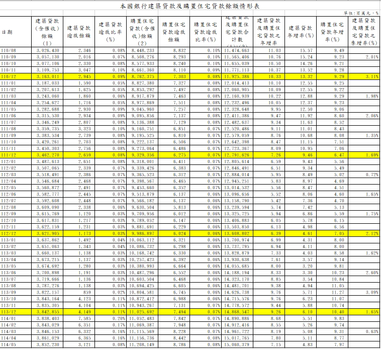 根據金管會最新統計,2025年5月底購置住宅貸款餘額高達約11兆2081.5億元,年增率7.97%,是2024年1月以來17個月低點;不過逾期放款餘額87.86億元,則是自2021年9月以來、共計45個月新高;逾放比率0.08%與上月持平,卻是2022年8月以來、共33個月的高點。顯示房貸增幅雖持續收斂,但繳不出房貸的壞帳卻在升溫。