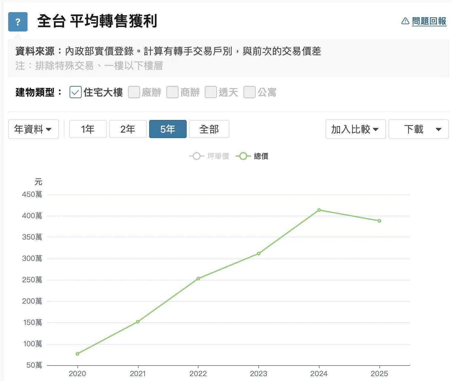 (2025/08/15 10:30)房屋平均轉售獲利「420⭢390萬」 專家酸:少買好幾個包