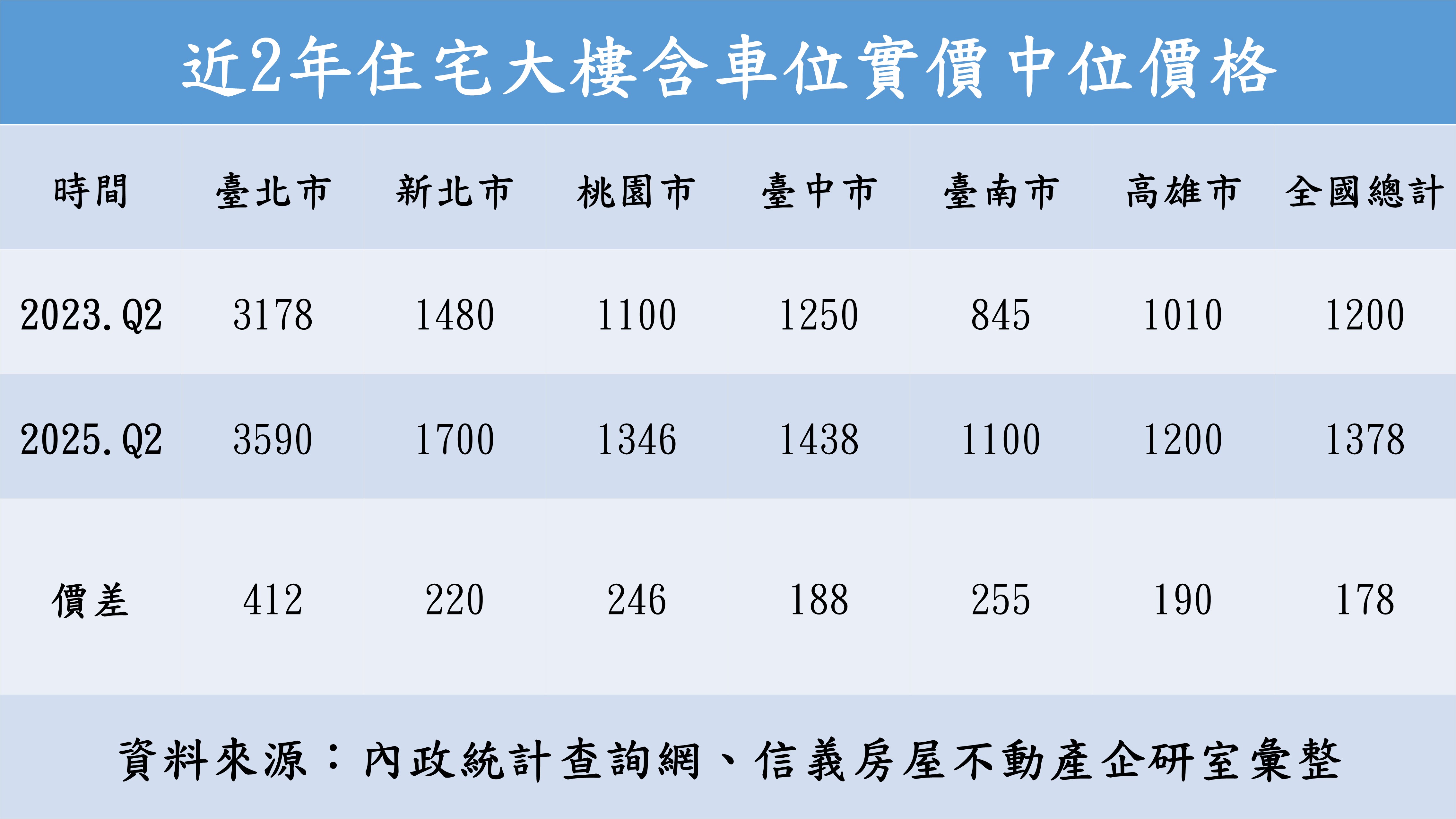 (2025/12/04 12:56)六都「大樓+車位」中位數站上1100萬 晚2年要多掏178萬