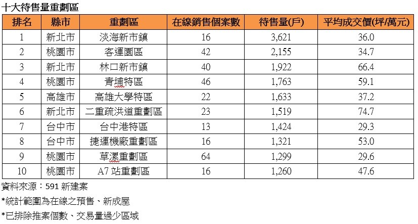 ▼10大待售量重劃區。(圖/591房屋交易網提供)