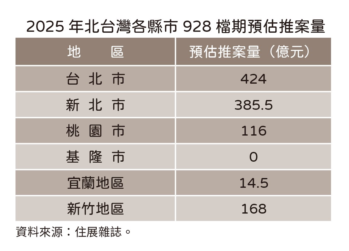 ▼2025年北台灣各縣市928檔期預估推案量(圖/住展雜誌統)