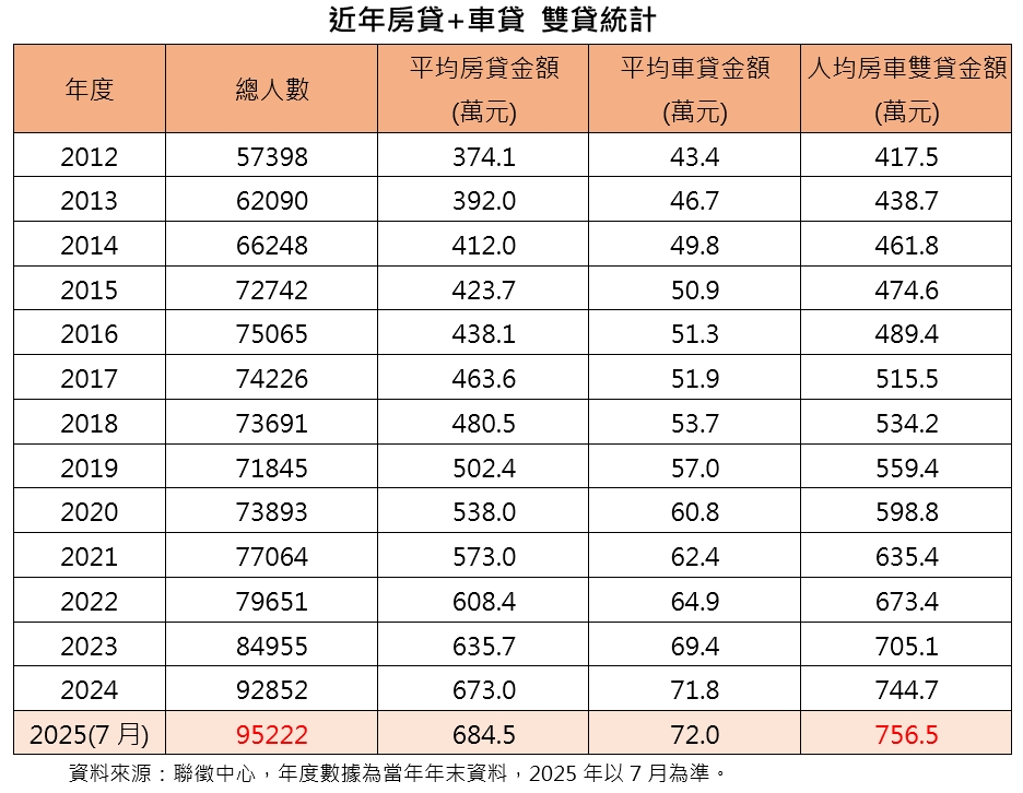 ▼近年「房貸+車貸」雙貸統計。(圖/台灣房屋提供)
