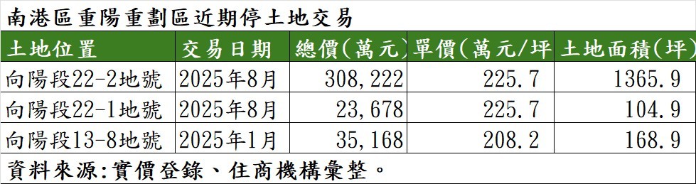 ▼南港區重陽重劃區近期停土地交易。(封面圖/住商不動產提供)