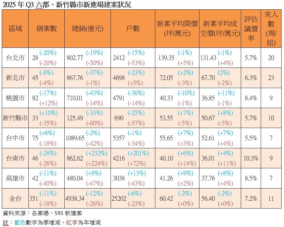 ▼2025年Q3六都、新竹縣市新進場建案狀況。(圖/591新建案提供)