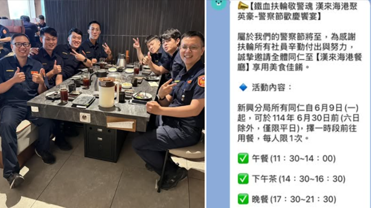(2025/11/28 12:24)分局長請同仁「穿制服五星餐廳吃到飽」 1.3萬網讚爆:不推不行