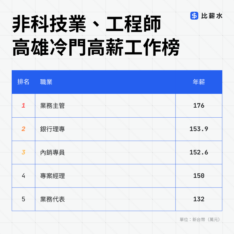 (2025/12/05 12:15)非科技業也能年薪百萬! 高雄5大高薪工作曝 「這職缺」上看176萬