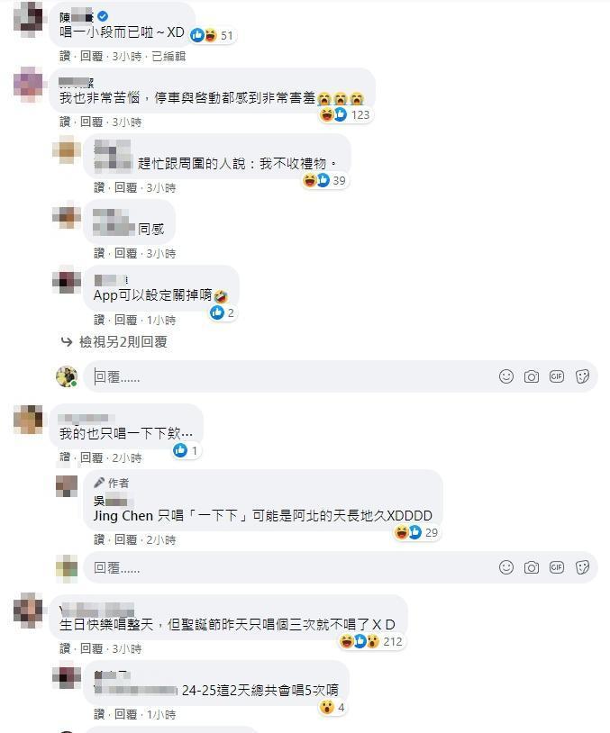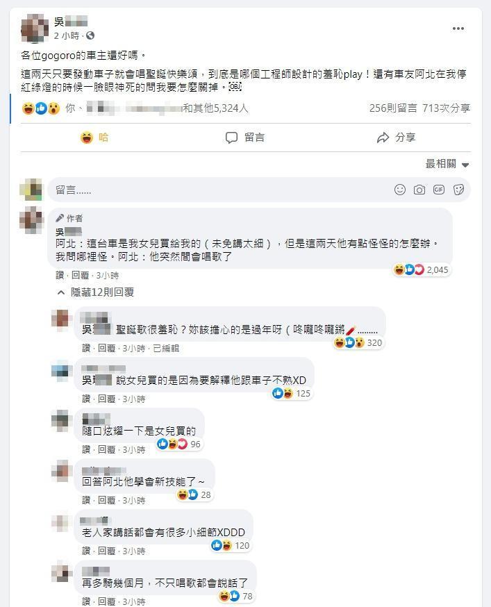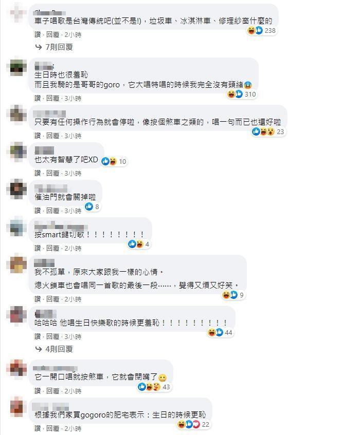有人說,其實在App設定中可以更改,也有人提醒「它一開口唱就按煞車,它就會閉嘴了」,然而有其他比較資深的「過來人」車友透露,「生日的時候更恥」,因為Gogoro的系統會記住車主的生日,等到生日當天發動時會幫車主高唱生日快樂歌,而且還是「唱整天」的。