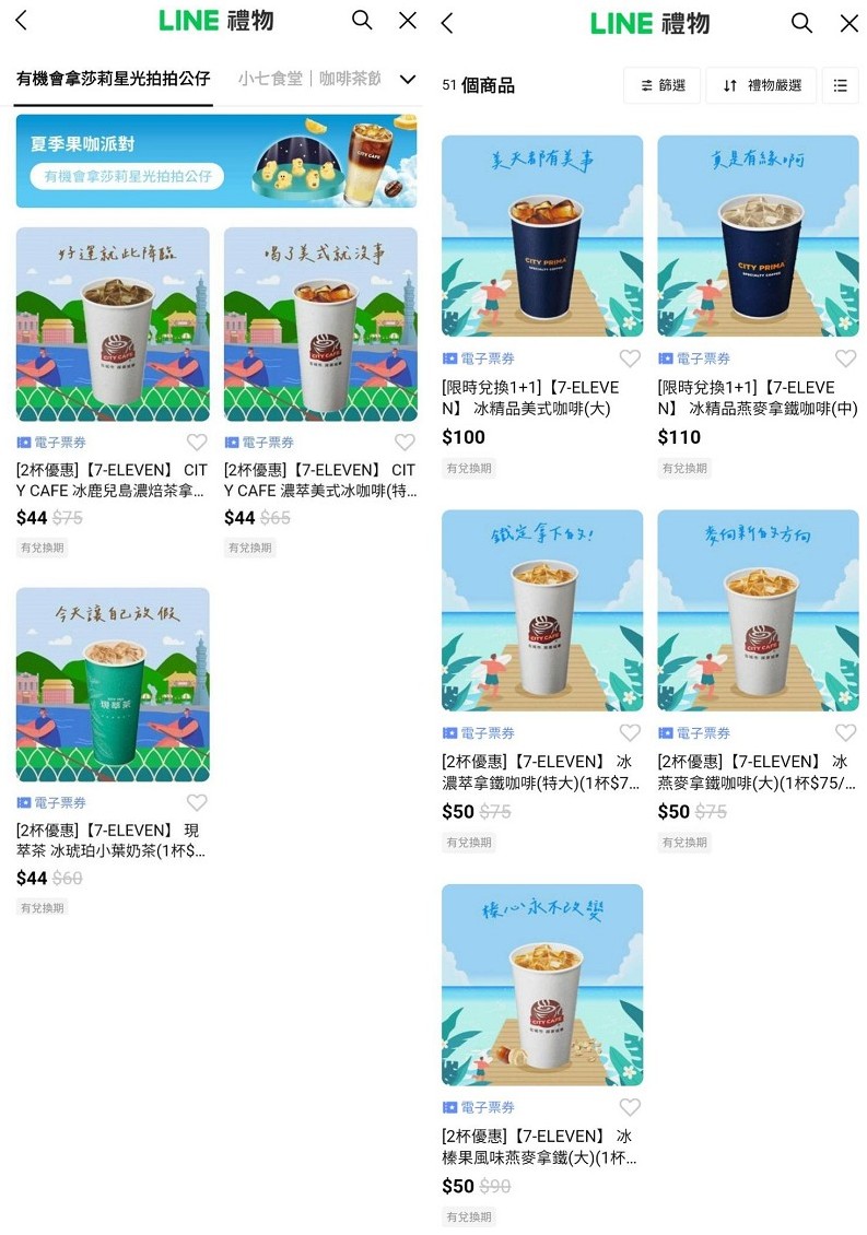 ▼LINE禮物推出7-11咖啡電子票券。(圖/翻攝《LINE禮物》)