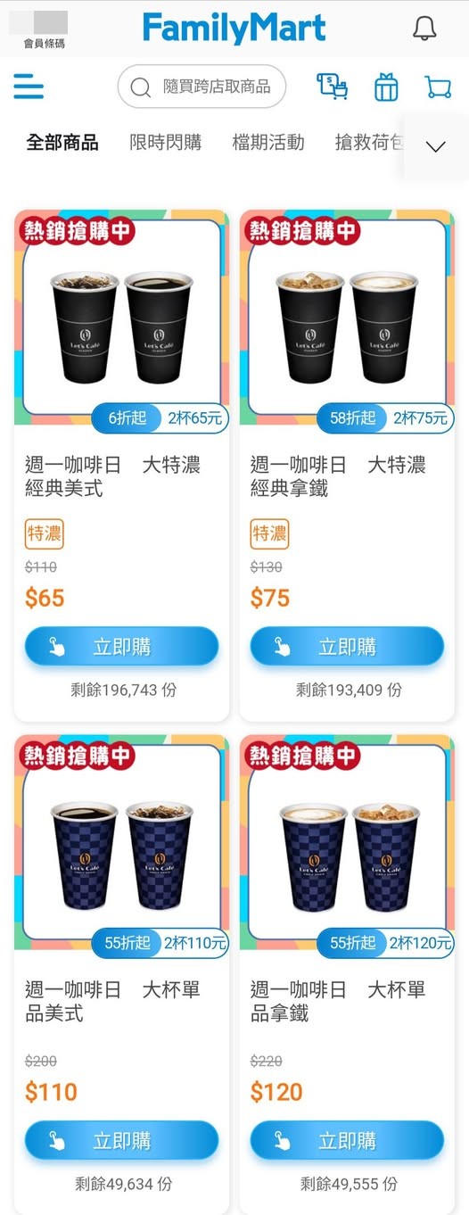 ▼全家APP推出「週一咖啡日」早上10點開賣。(圖/翻攝《全家》粉專)
