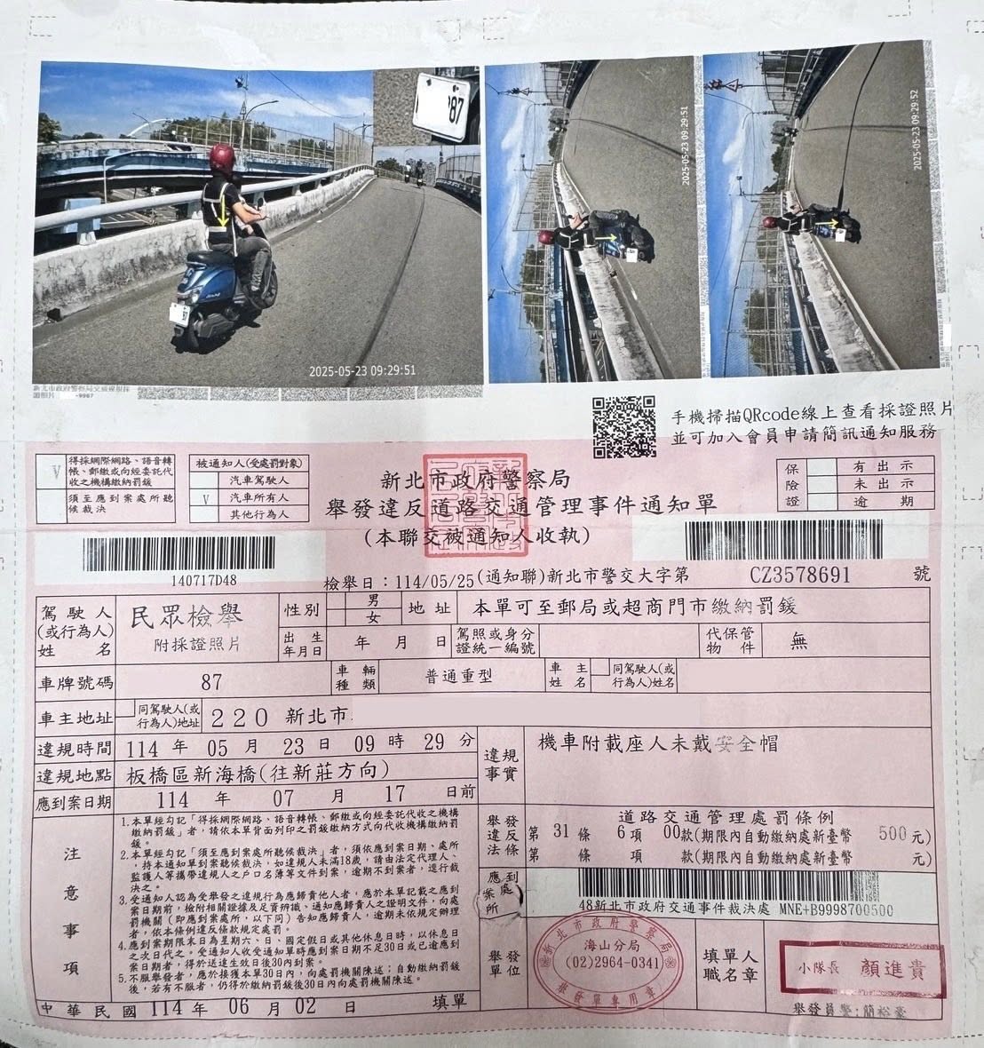 ▼原Po遭檢舉後收到罰單。(圖/翻攝自臉書社團「爆料公社公開版」)
