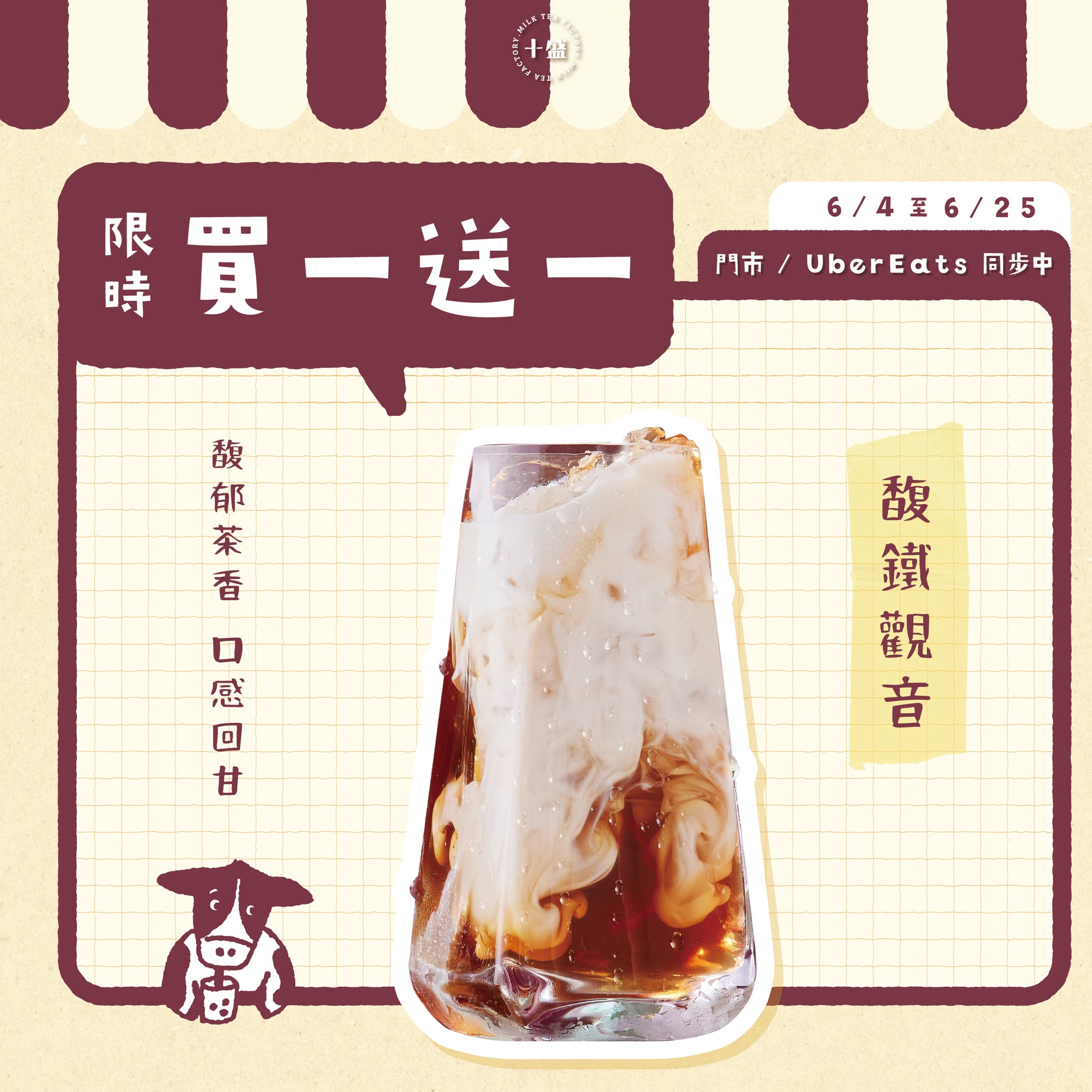 買1送1:到全台門市,或在外送平台UberEats上可享十盛「馥鐵觀音」買1送1。