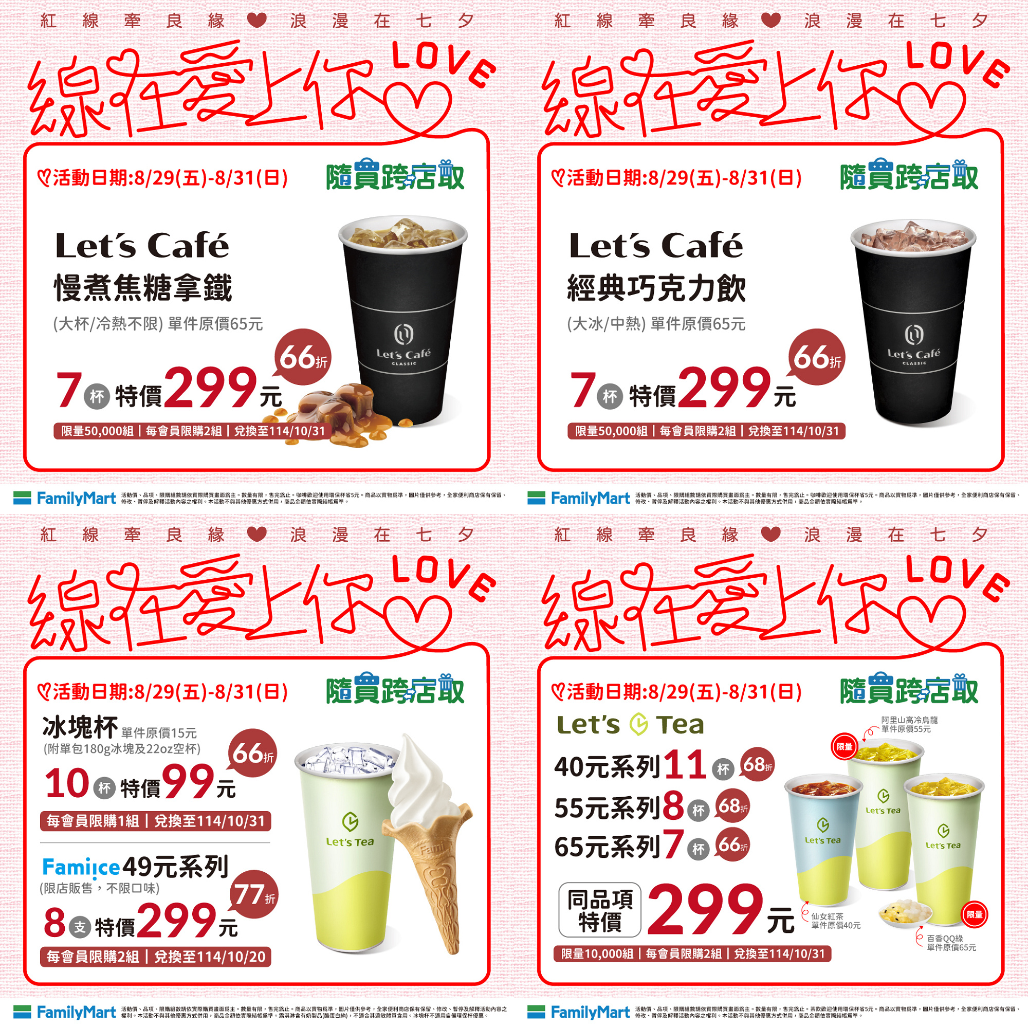 ▼全家七夕情人節推出「線上在愛你」活動,咖啡、茶飲、冰淇淋通通有優惠。(圖/翻攝《全家》粉專)