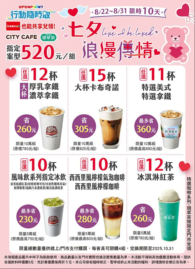 ▼7-11APP祭出七夕浪漫傳情咖啡茶飲優惠。(圖/翻攝《7-ELEVEN》粉專)