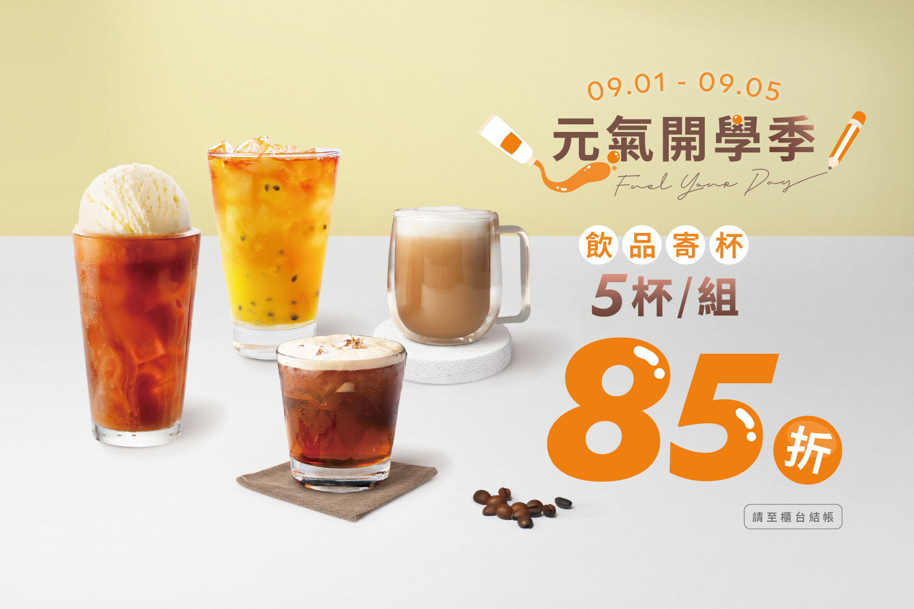 飲品寄杯5杯85折:路易莎「元氣開學季」寄杯優惠活動,活動期間購買1組5杯飲品 (不含手沖和超越精品系列),即享85折優惠。