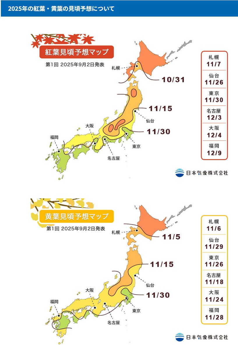 「日本氣象株式會社」2日也分享賞楓時間預測,受到全球暖化影響,今年日本各地最佳賞楓時間均會延遲,預估札幌、仙台、東京、名古屋、大阪、福岡等地,要到11月底、12月初才會是最佳觀賞時間。