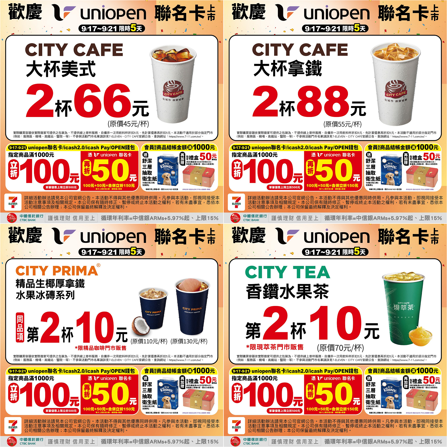 ▼7-11歡慶uniopen聯名卡上市,推出一系列咖啡、茶飲優惠。(圖/業者提供)